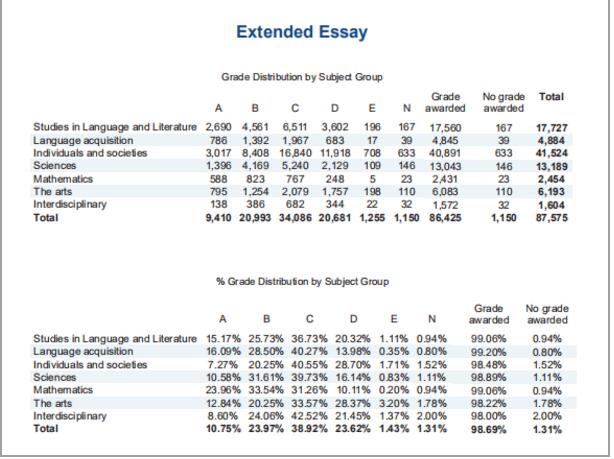 EE选择课题最多的是第一组Studies in Language and Literature,总共有17,727份EE选择了该组主题,总共有2,690份EE获得了A。