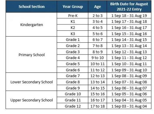 入学年龄参考如下: