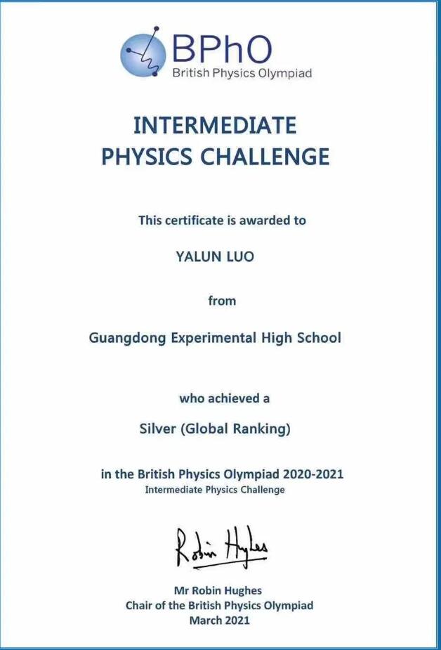 近日,2021年英国物理思维挑战(BPhO)获奖结果揭晓,省实AP学子表现出色,夺得佳绩,DAP6班吴思行斩获全球金奖,DAP1班罗亚伦斩获全球银奖!